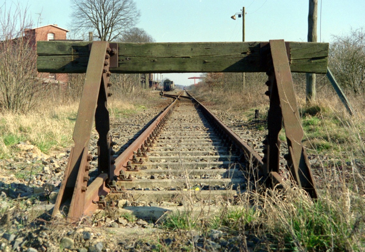 Bis hier und nicht weiter: das Ende der ehemals bis Ratzeburg führenden Strecke Hagenow Land–Zarrentin am 12.03.1995