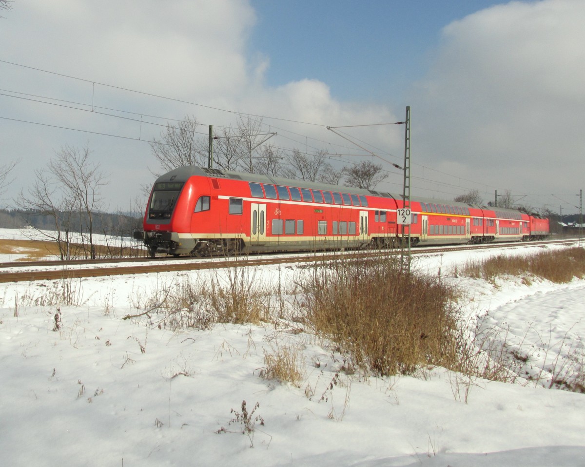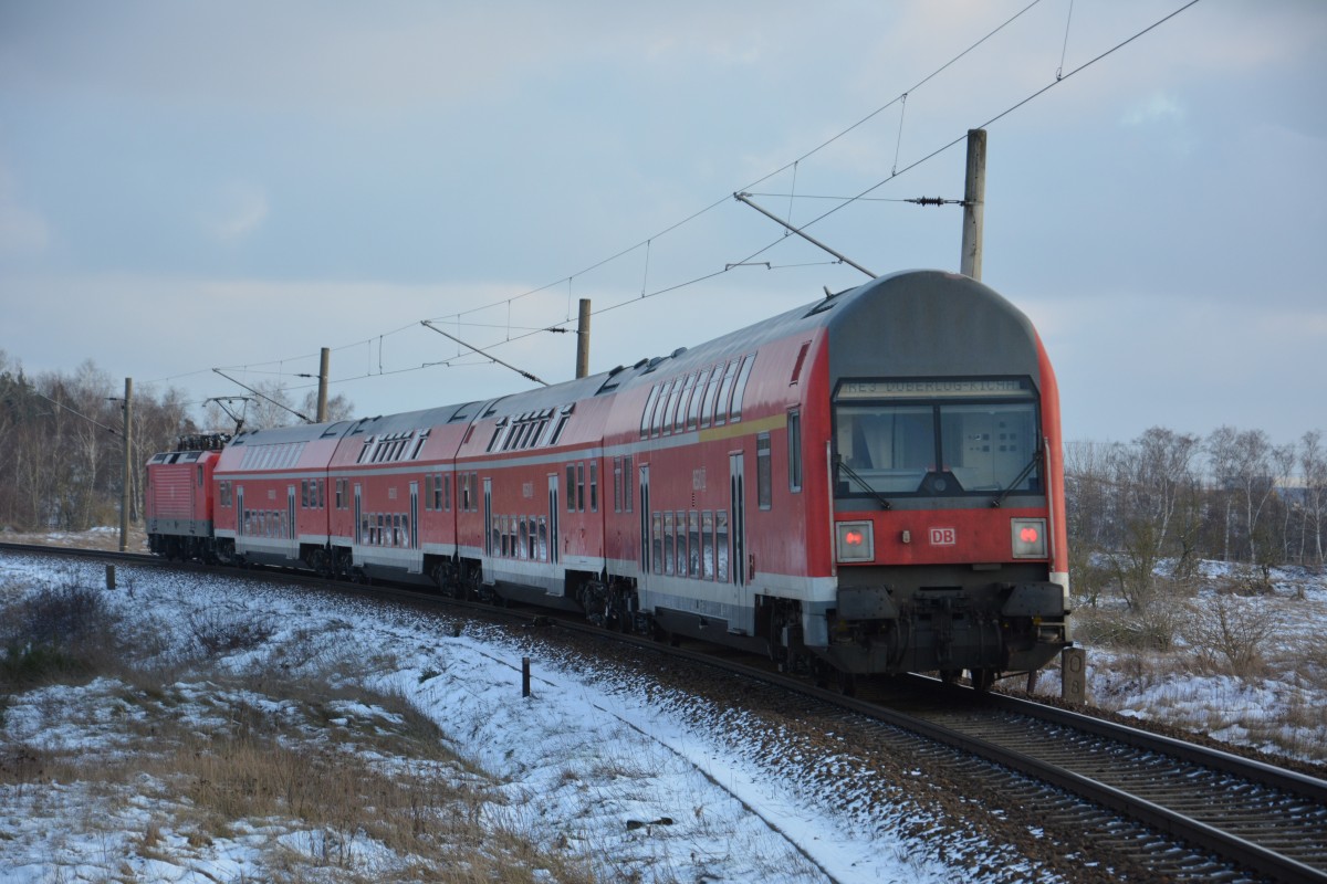 DABbuzfa 760 mit dem RE 18316 nach Stralsund. Aufgenommen am 05.02.2015, Große Kurve bei Großbeeren.