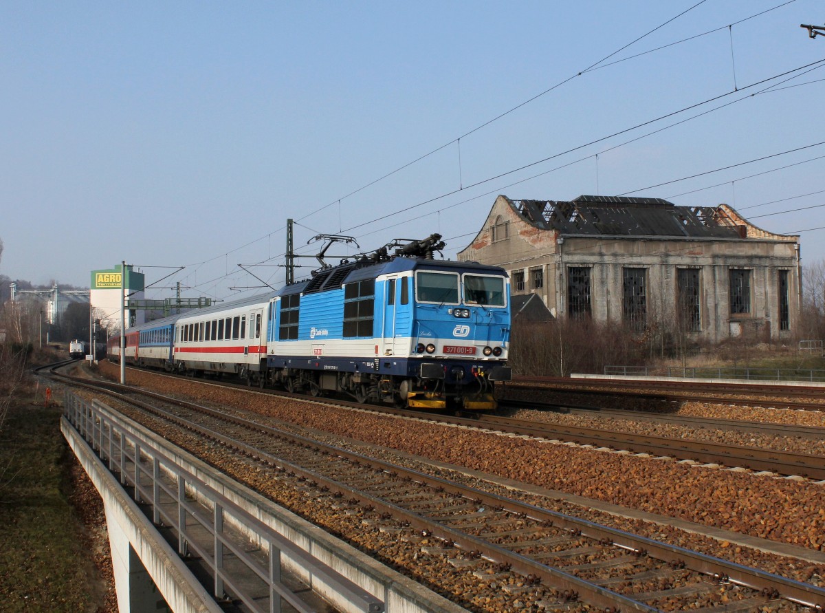 Tschechische Lok BR 386 (91547386001-2) zieht einen Güterzug am 05.02.2015 Richtung Genshagen.