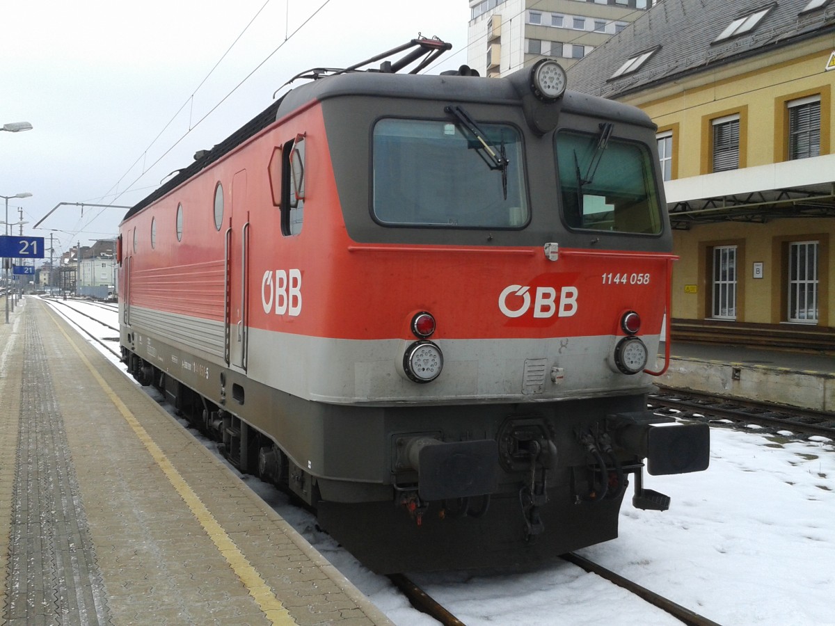 Lok 1144 058-5 am 13.2.2015 abgestellt auf Gleis 21 in Klagenfurt Hbf.