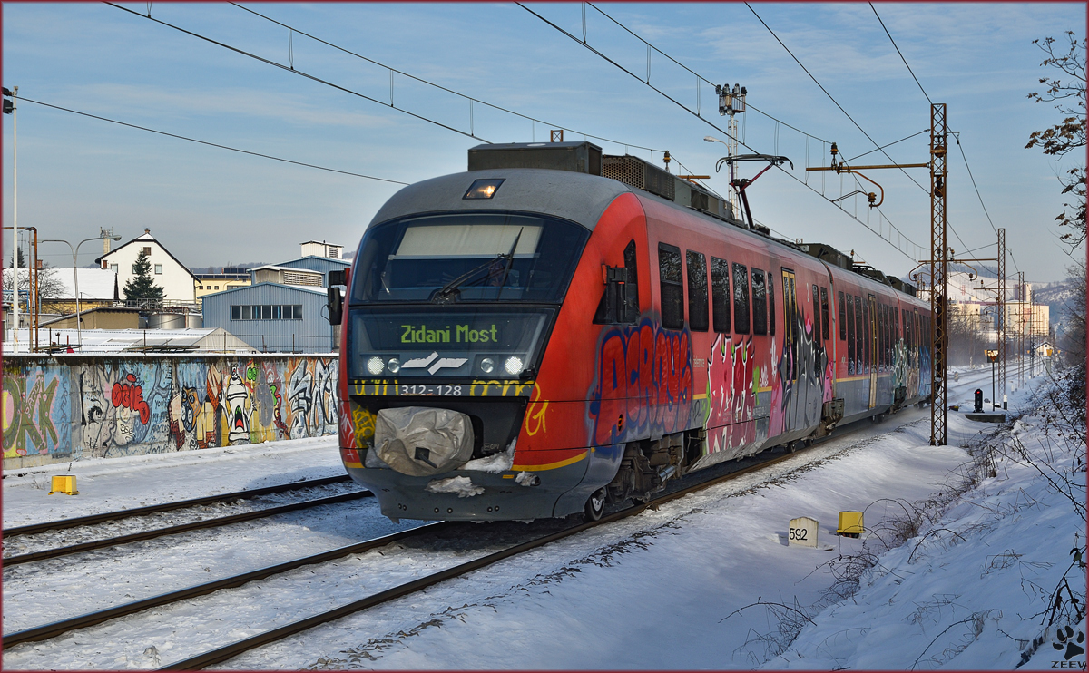 SŽ 312-128 fährt durch Maribor-Tabor Richtung Zidani Most. /2.1.2015