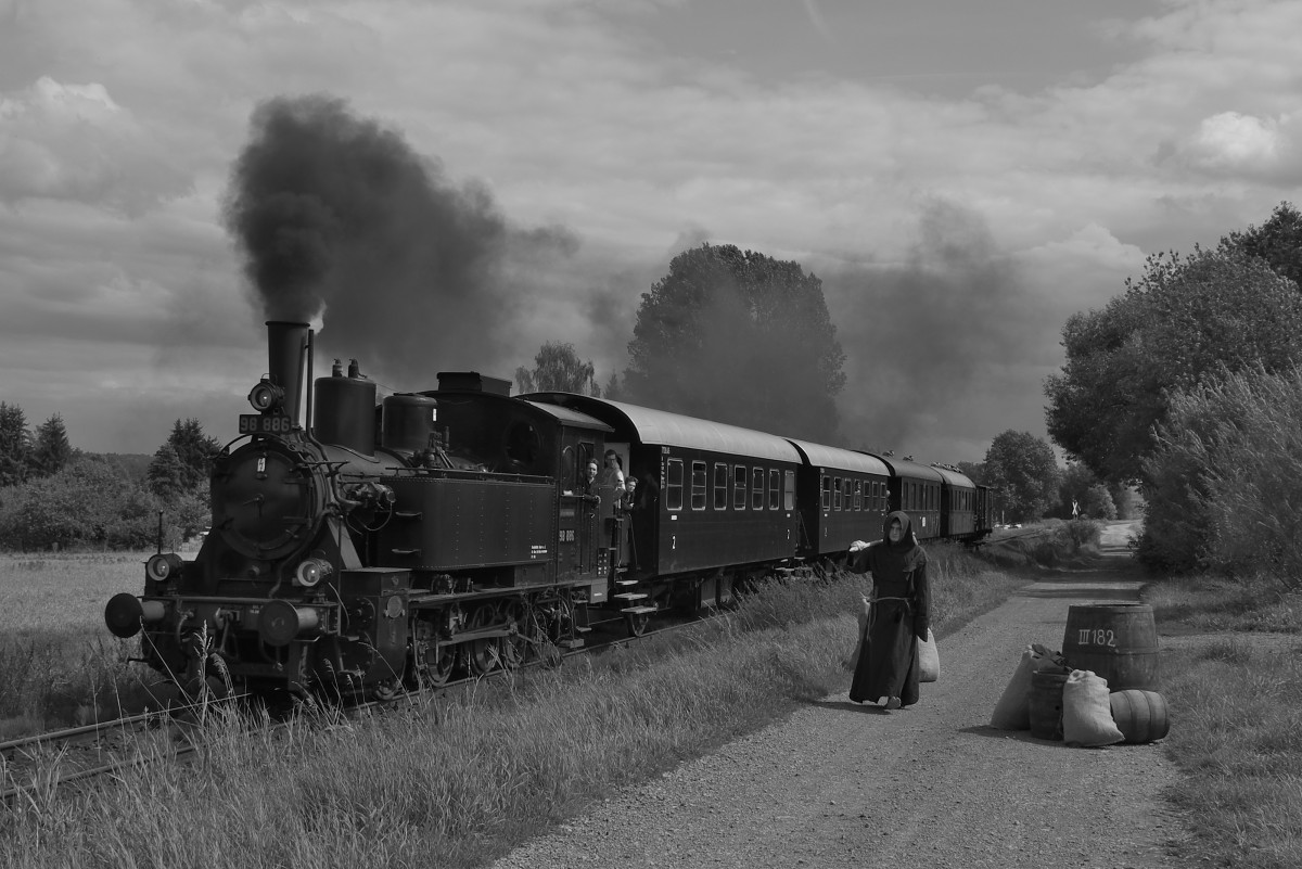 -NACH DER FELDARBEIT- Es wäre eigentlich noch genügend Arbeit, die der Gutsherr dem Knecht Seppl aufgetragen hat. Doch dieser zieht es vor, den restlichen Tag zu verschlafen. Dumm nur, dass der Lokführer des nahenden Nachmittags-Zuges den Gutsherrn persönlich kennt. -Ein Bild aus meiner Zeitsprung-Fotografie-