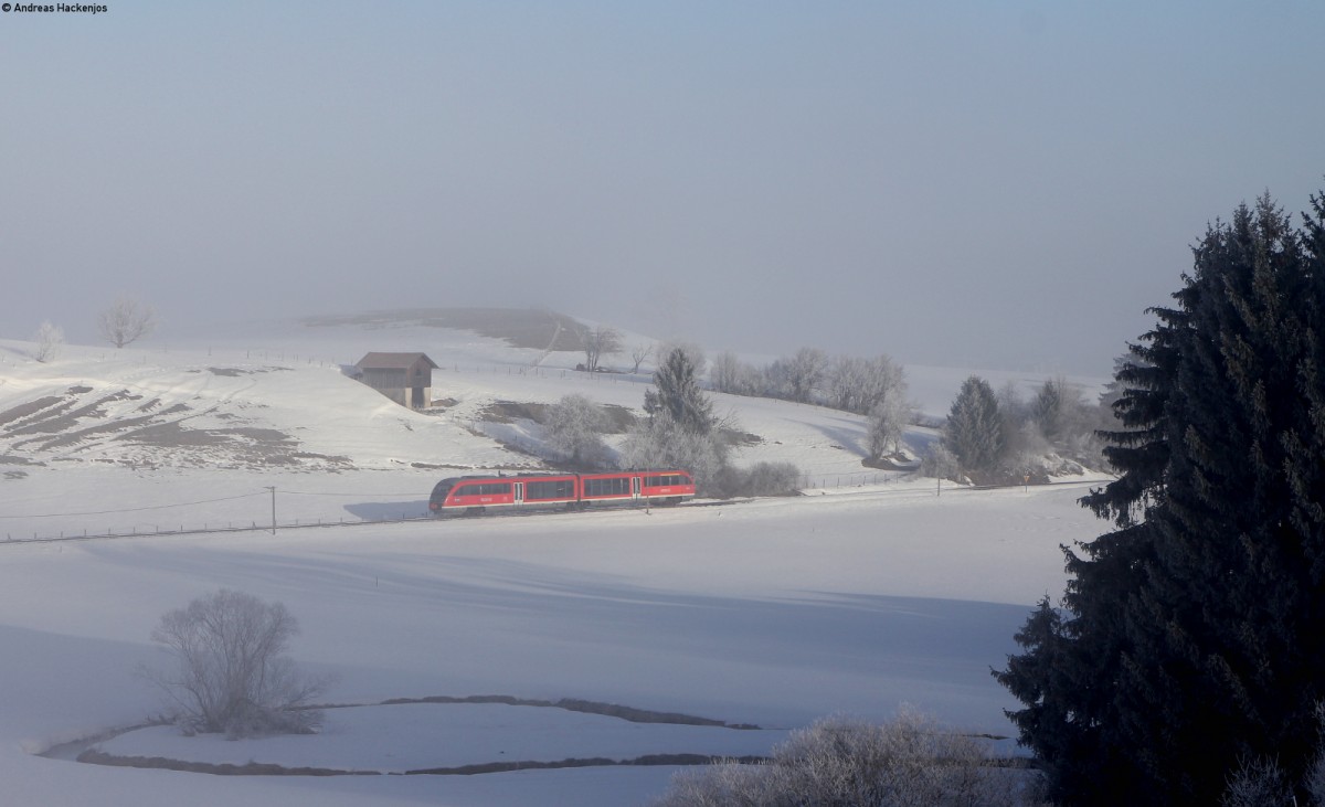 612 558 mit RE 3162 von München nach Kempten HBF.Aufgenommen bei Görwangs im Allgäu am 21.2.2015.