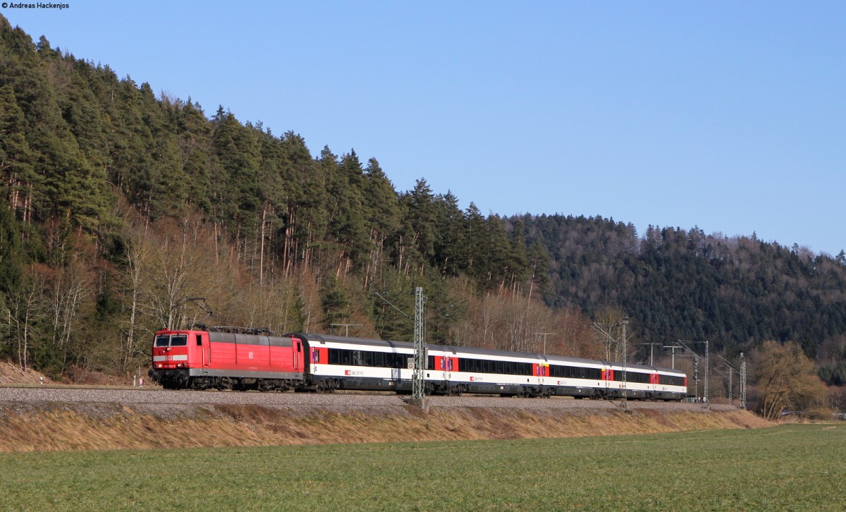 ES 64 F4-115 mit einen Aufliegerzug in Mittelsinn Richtung Süden am 25.02.15.