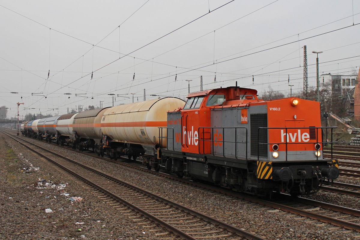 BUVL/LaS 203 014 (ex HVLE V160.02) am 7.3.14 mit einem Kesselzug in Düsseldorf-Rath.