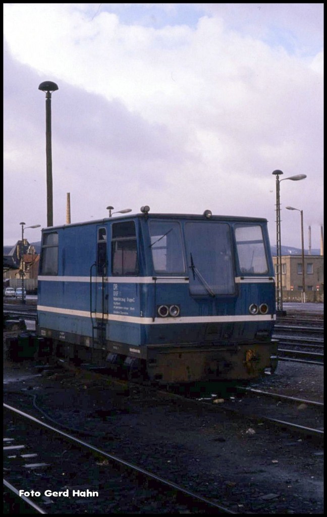 Ein sehr originelles Fahrzeug stand am 14.2.1990 im Bahnhof Wernigerode. Es gehörte der Deutschen Reichsbahn und trug die Bezeichnung GKF 721. Ich halte es für ein Rottenfahrzeug.