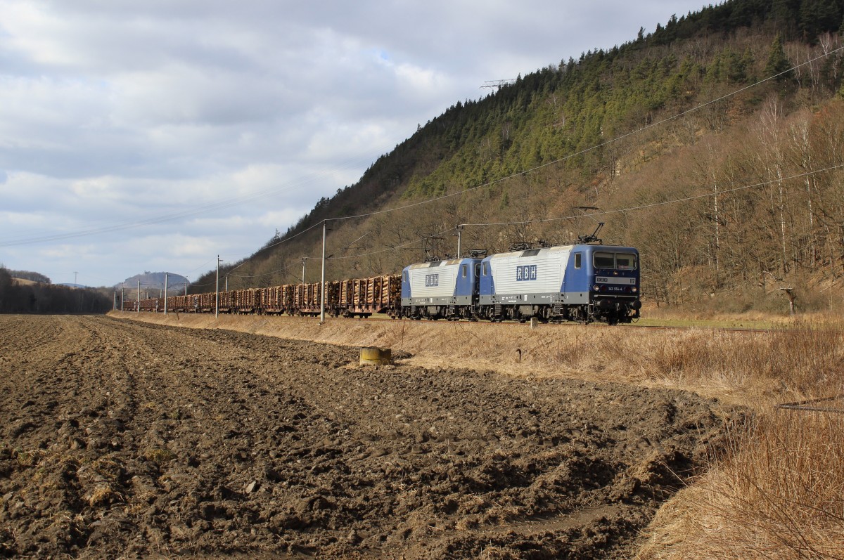 RBH 117 (143 554-4) und RBH 116 (143 573-4) zu sehen am 28.02.15 bei Remschütz.