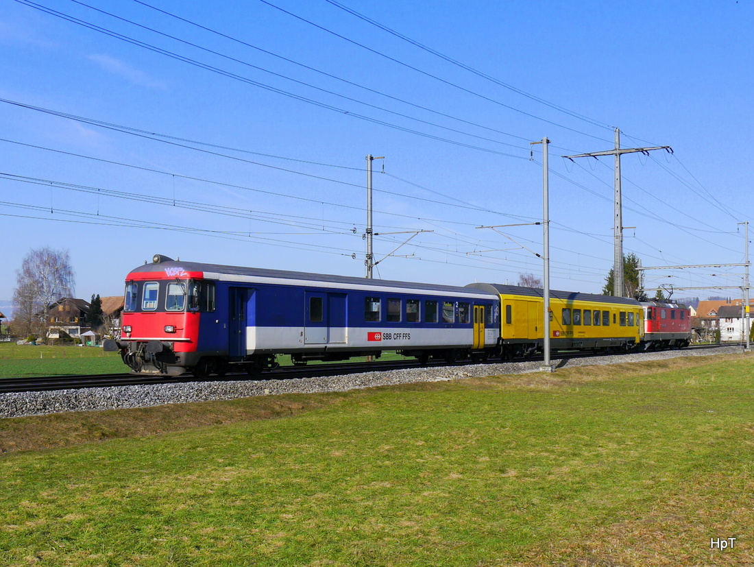 SBB - Test/Messzug mit dem Steuerwagen BDt 50 85 82-33 984-4 an der Spitze unterwegs bei Lyssach am 20.02.2015
