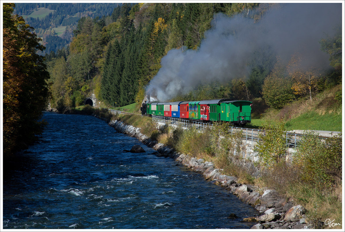 120 Jahre Murtalbahn - Die beiden Dampfloks STLB Bh1 und U11 ziehen einen Dampfsonderzug von Murau nach Tamsweg.