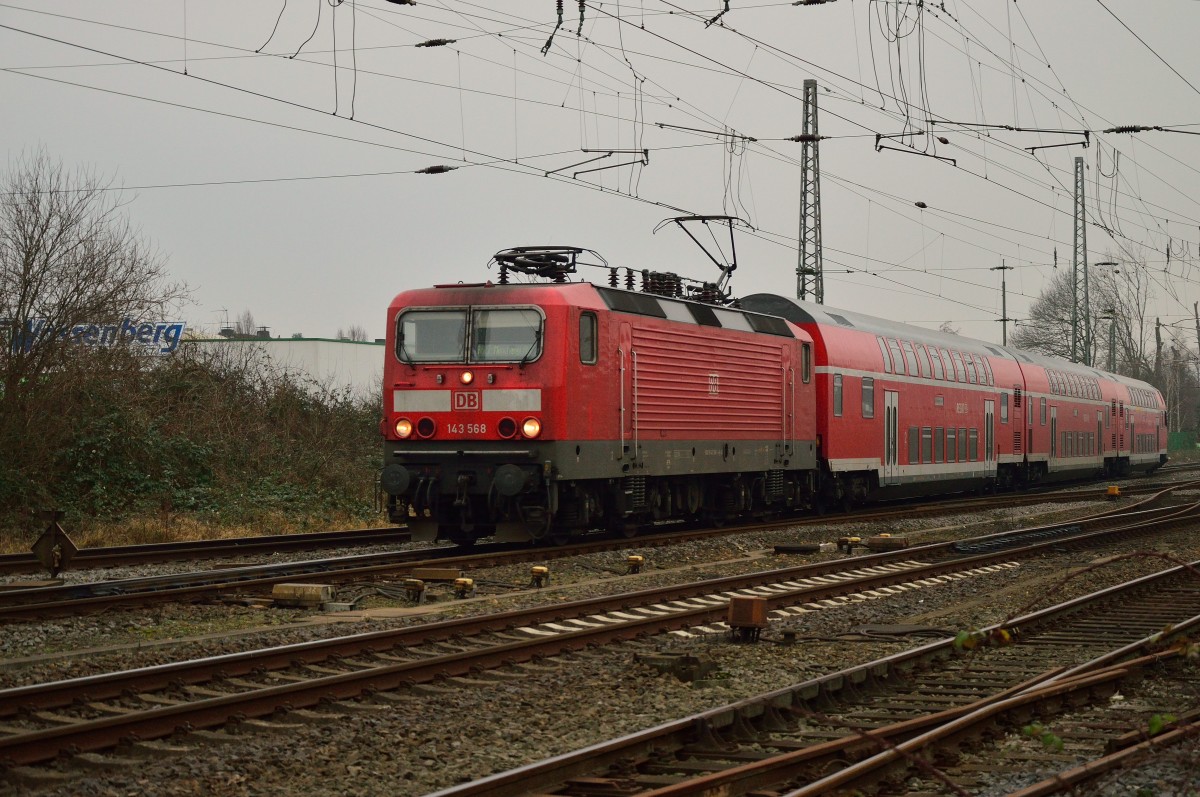 143 568 in Grevenbroich als RB 27 nach Mönchengladbach. 23.1.2015