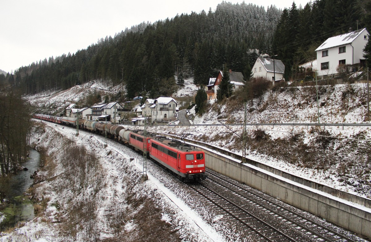 185 170-8 DB Schenker auf der Frankenwaldrampe bei Steinbach am 23.01.2015.