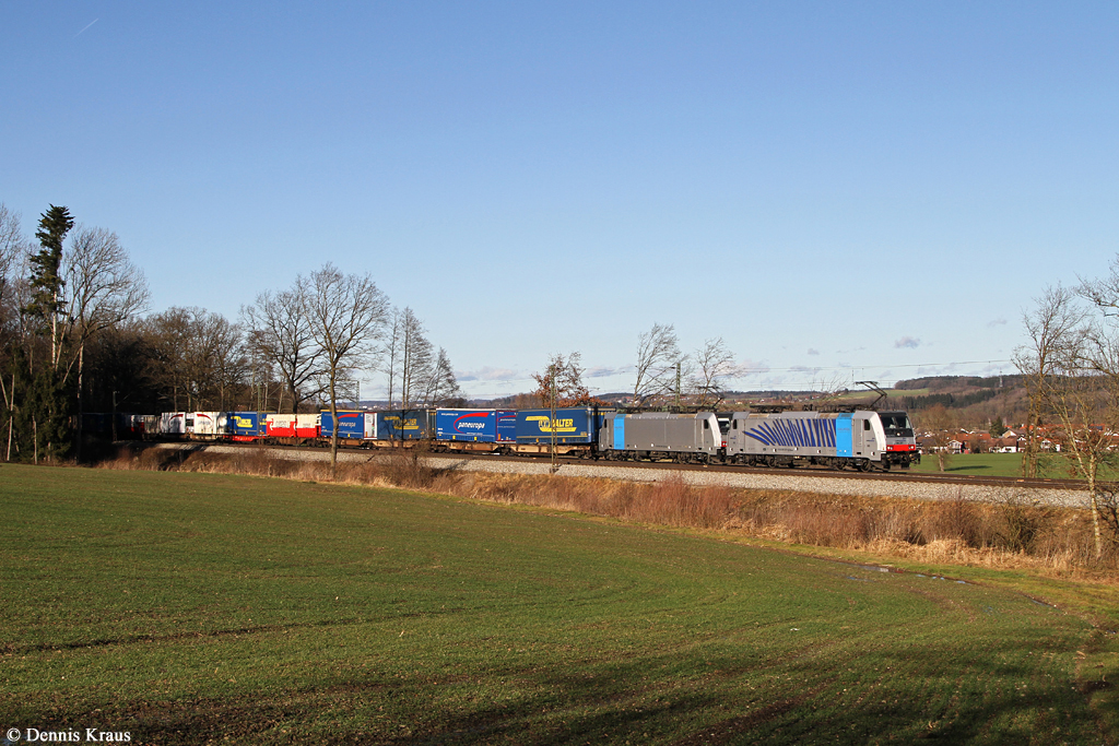 186 287 + 288 mit Klv Zug am 10.01.2015 bei Aßling.