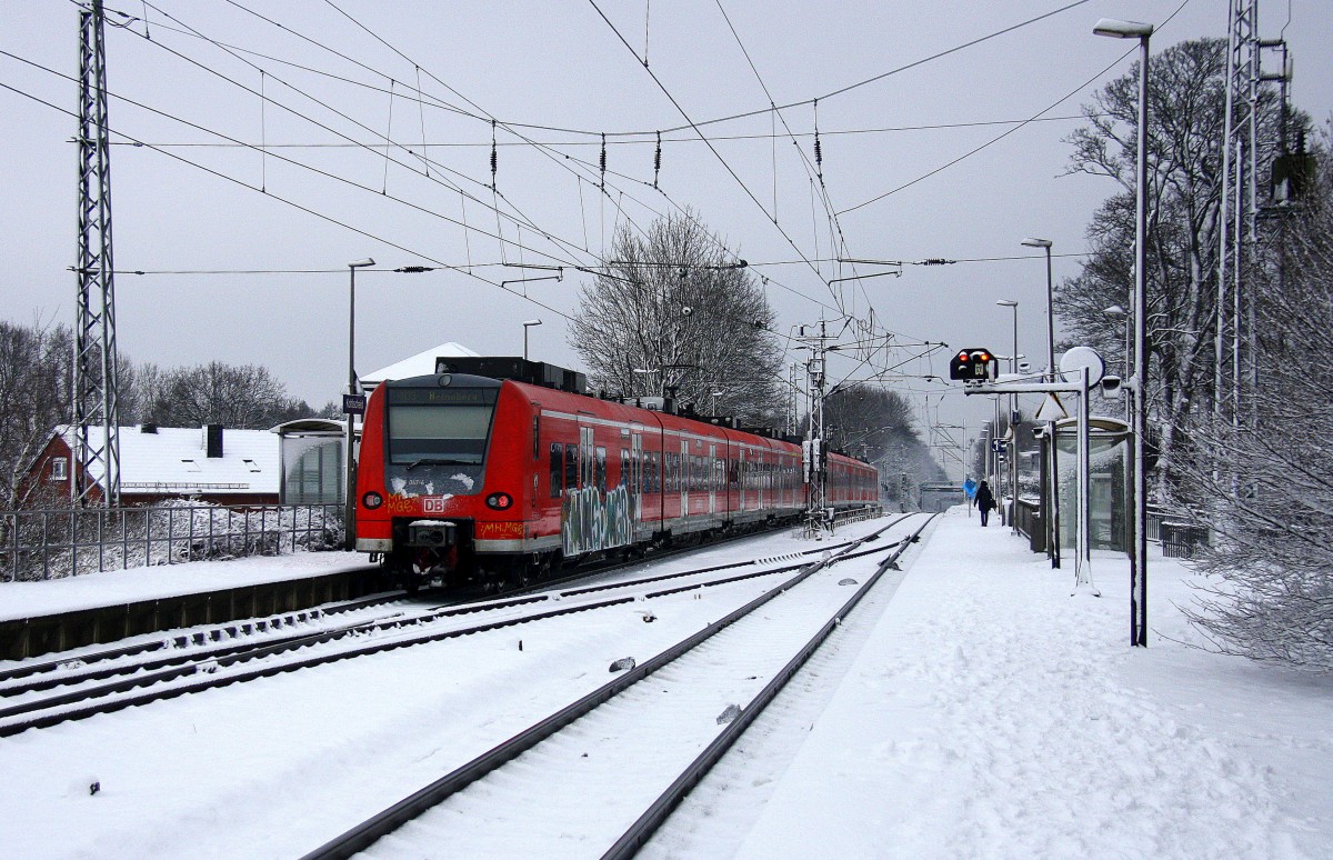 Ein Nachschuss von der 422 508-2,422 024-0 beide von DB als S1 kommen aus Solingen Hbf) nach Dortmund-Hbf und fahren in Duisburg-Hbf ein. Bei Schnee am Kalten Mittag vom 25.1.2015.