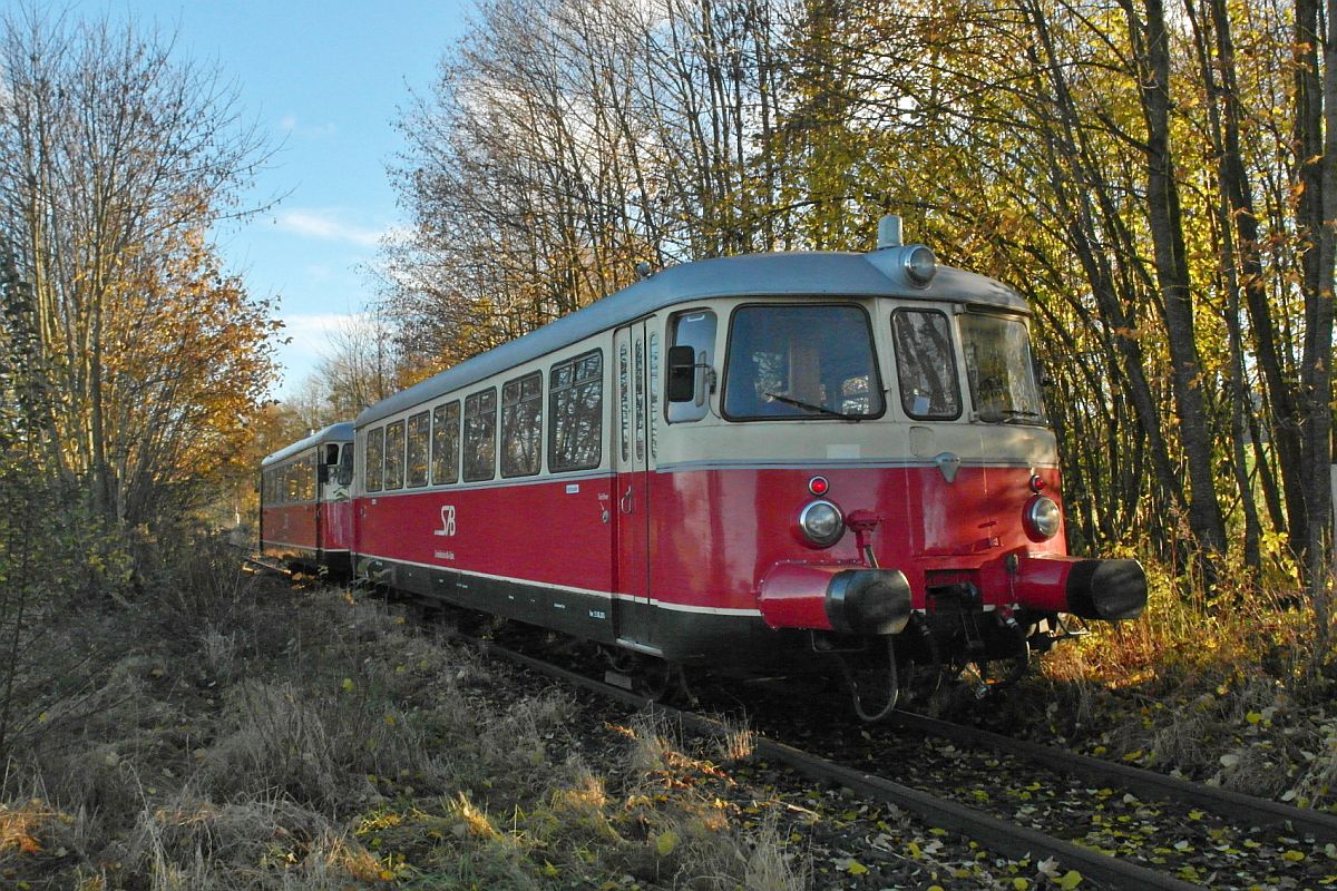 An einem Wochenende im November fanden zwischen Aulendorf und Pfullendorf Sonderfahrten mit einem Schienenbus statt. Zum Einsatz kam der MAN-Triebwagen von 1961 der SAB (Schwäbische Alb-Bahn). Ab Altshausen wurde auf den Gleisen der KBS 754 gefahren, auf denen nur noch von Mai bis Oktober an Sonntagen Züge des RADEXPRESS OBERSCHWABEN verkehren. Am 16.11.2014 passieren VT 8 und VS 14 auf der Fahrt von Pfullendorf nach Altshausen das Gebäude des ehemaligen Bahnhofs Hosskirch-Königsegg.