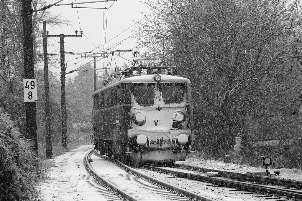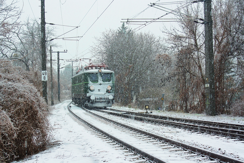 1041.15 der ARGE 1041 am 30.Jänner 2015 bei dichtem Schneefall in Hainburg a.d. Donau Kulturfabrik.