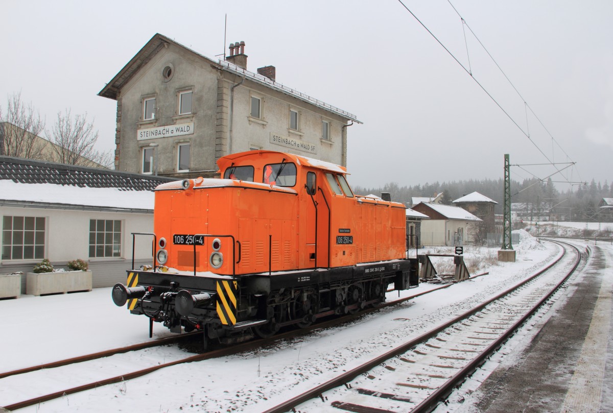345 250-5 (106 250-4) EBS steht in Steinbach am Wald bei Wiegand Glas am 23.01.2015. (Bild entstand vom Bahnsteig in Steinbach)
