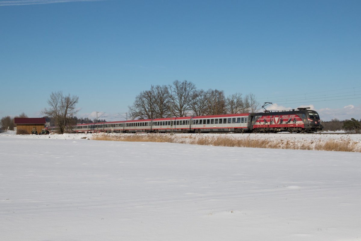 101 050 (50 Jahre Jugend forscht) mit IC719 zwischen Bruck/Mur und Pernegg am 31.01.2015.