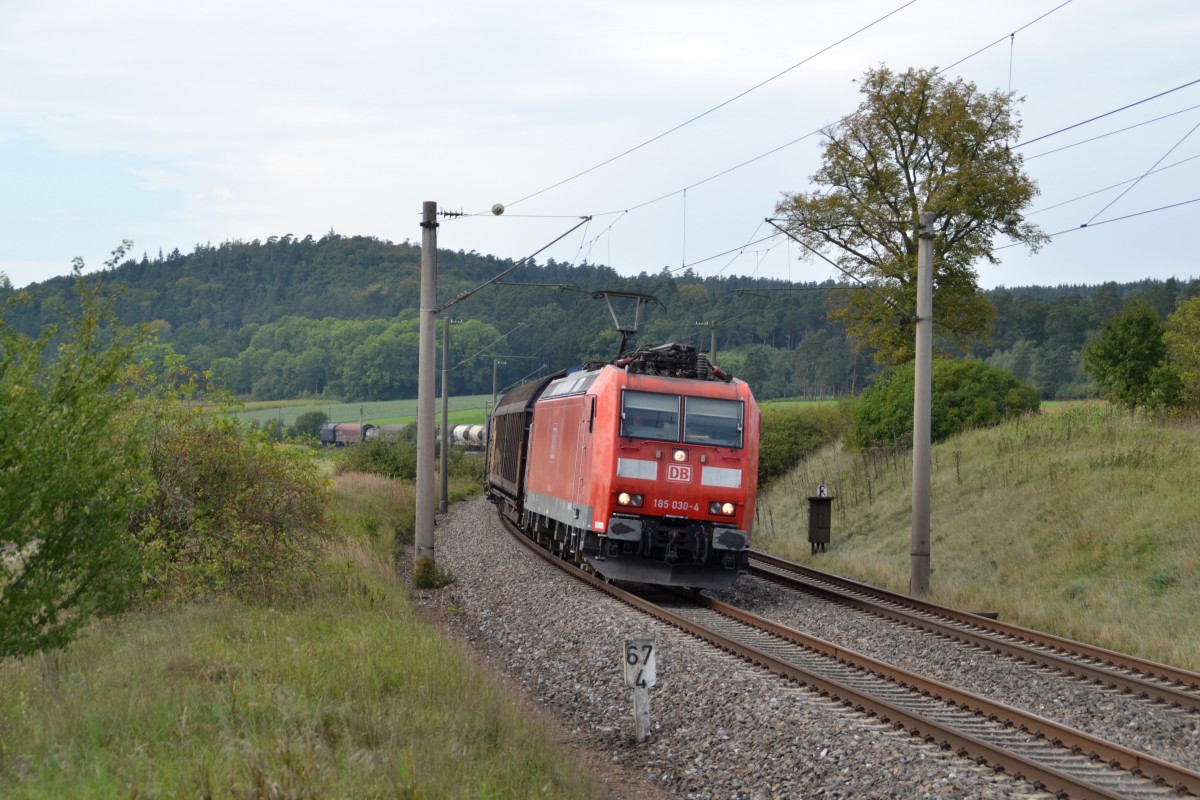 185 378-7 ist am 28.01.15 mit einen Autozug (alles Audis) bei Hermannspiegel unterwegs.