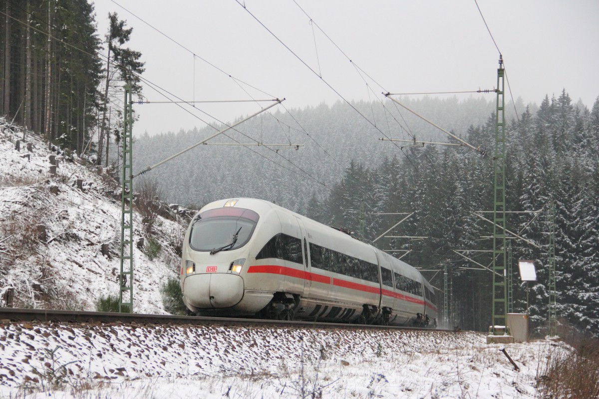 101 027-1 schiebt den IC 2157 in Richtung Leipzig gesehen am 28.01.15 in Ludwigsau-Friedlos.