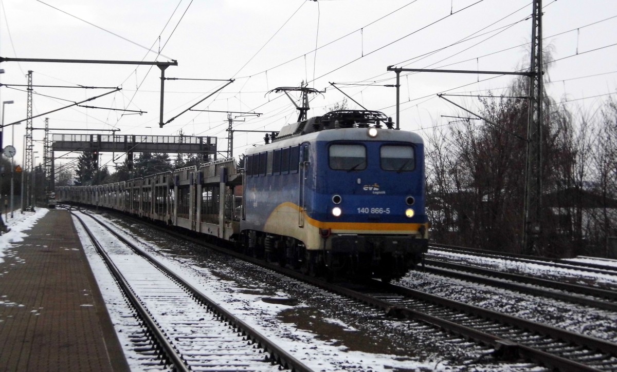 Am 31.01.2015 kam die 140 866-5 von der evb Logistik aus Richtung Braunschweig nach Niederndodeleben und fuhr weiter in Richtung Magdeburg .