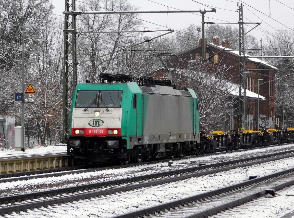 Am 31.01.2015 kam die 186 127 von der ITL aus Richtung Magdeburg nach Niederndodeleben und fuhr weiter in Richtung Braunschweig .