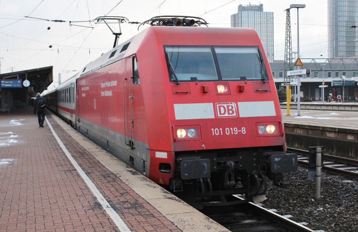 Bild 013: Am 31.01.2015 wurde IC 2013 von Leipzig nach Obersdorf mit 101 019-8 bespannt! Hier zu sehen ist die Lok beim Halt in Dortmund Hbf