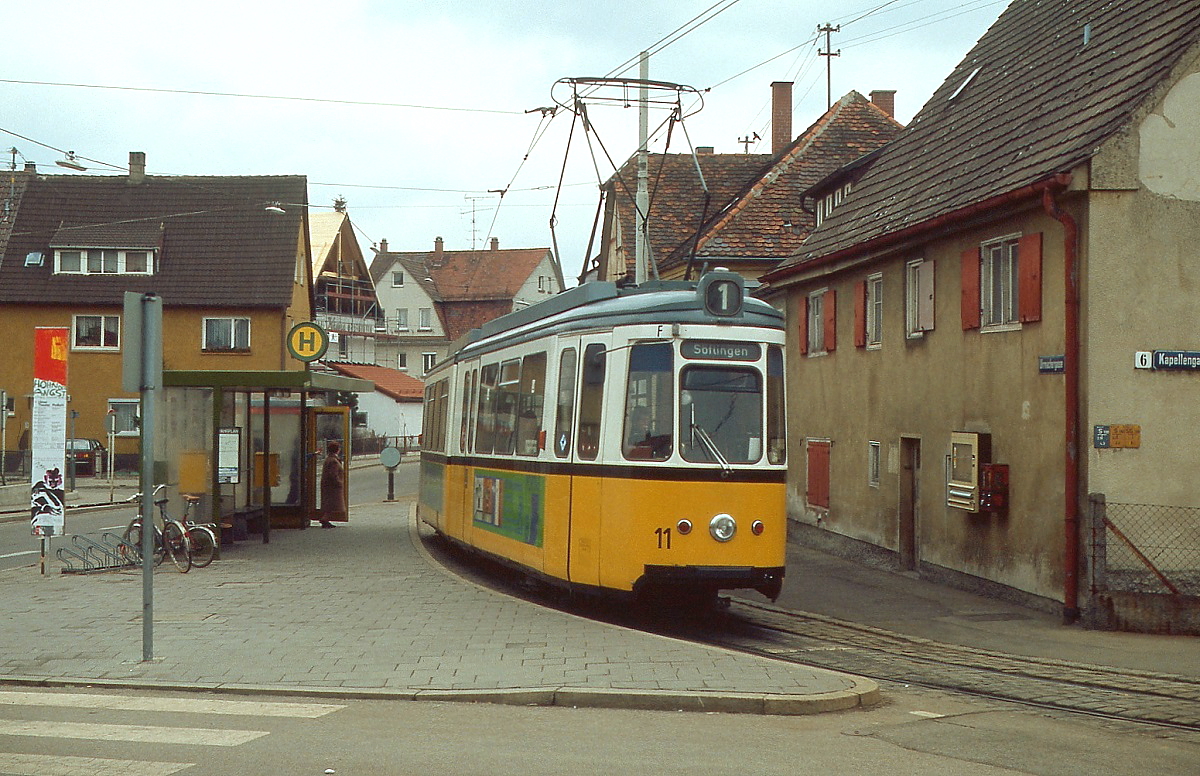 Der ex-Stuttgarter GT4 11 im Februar 1985 in der Endhaltstelle Söflingen