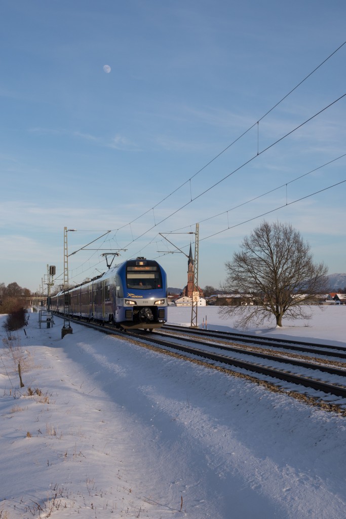 Meridian unterm Mond - ET 315 auf dem Weg nach München, aufgenommen am 31. Januar 2015 bei Übersee.