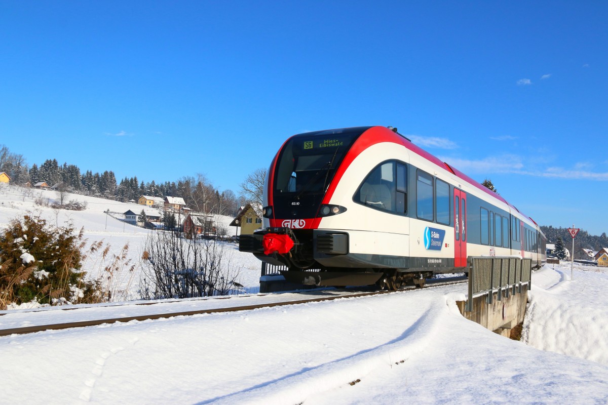 Ein Weihnachtlicher Sonderzug der Salzburger Lokalbahn kurz vor Lamprechtshausen (24.12.2014)