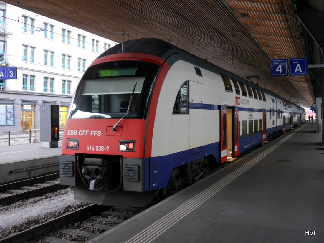 SBB - Triebzug RABe 514 038-9 als S24 nach Zug im Bahnhof Zürich am 24.01.2015