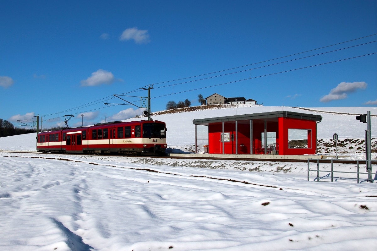 SLB ET 56 "Land Oberösterreich" als S11 von Ostermiething nach Bürmoos bei der Durchfahrt in Diepoltsdorf (neue Haltestelle zwischen Trimmelkam und Ostermiething) aufgenommen am 31.1.2015. Seit 12.12.2014 ist die verlängerte Strecke nach Ostermiething (vorheriger Endbahnhof Trimmelkam) in Betrieb.