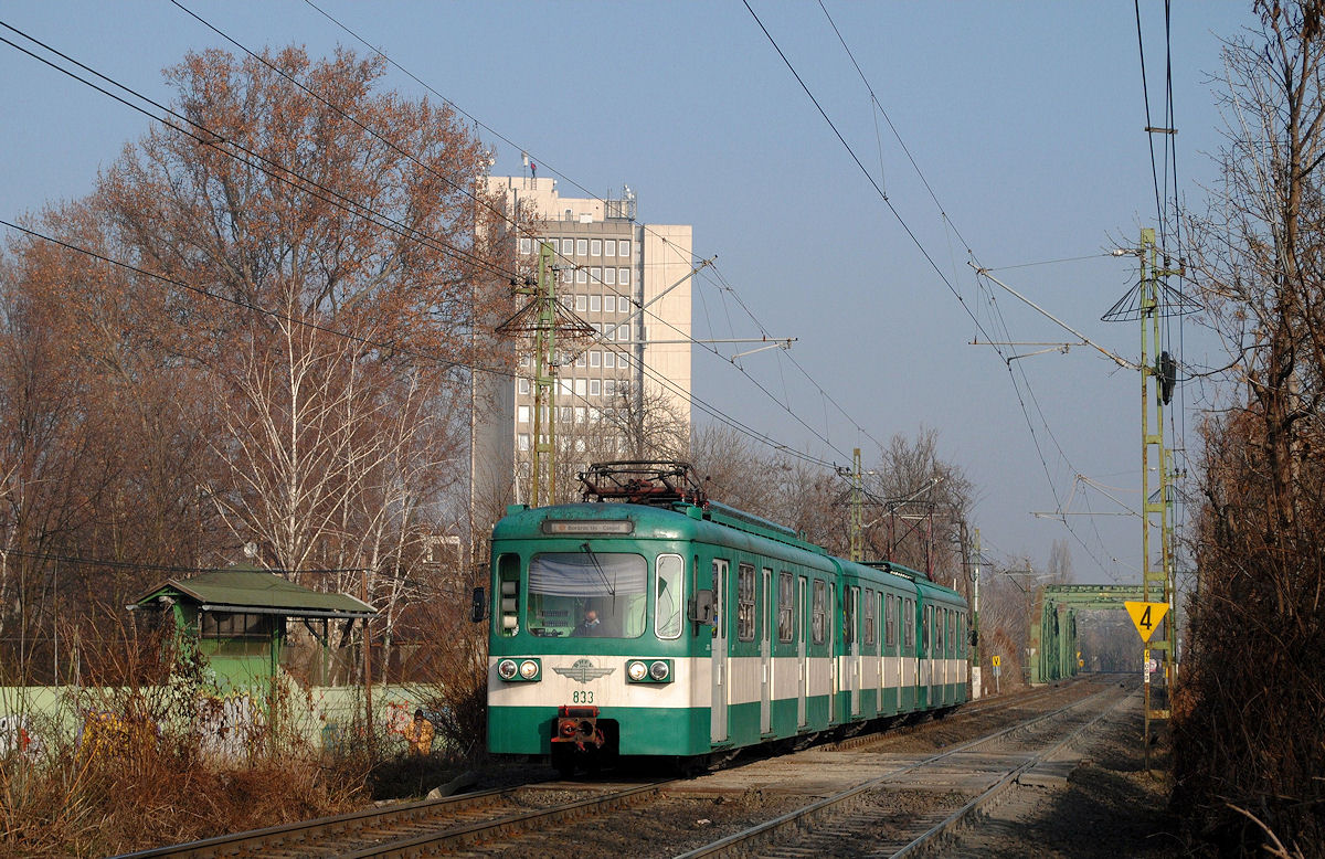 Tw. 833 der Vorortebahn nach Csepel überquert die Brücke über die Rackevei Dunai. (28.01.2015)