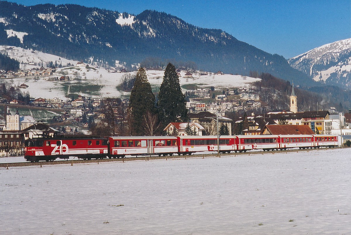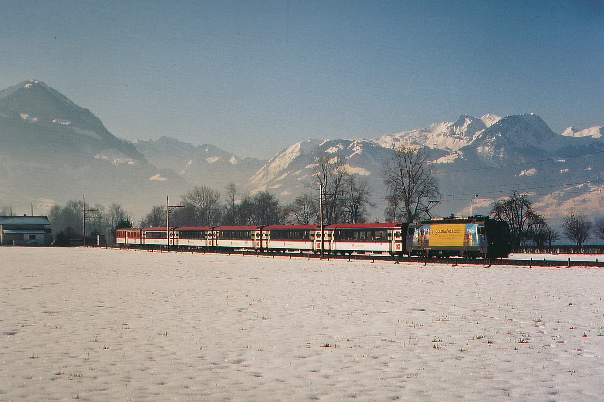 ZB: De 4/4 122 mit Regio Luzern - Gisiwil bei Sarnen am 5. Februar 2005. Foto: Walter Ruetsch