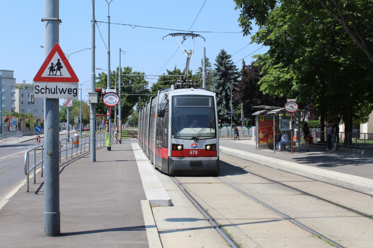 Wien WL SL 25 (B 628) Aspern, Langobardenstraße (Hst. Oberdorfstraße) am 1. Juli 2015.