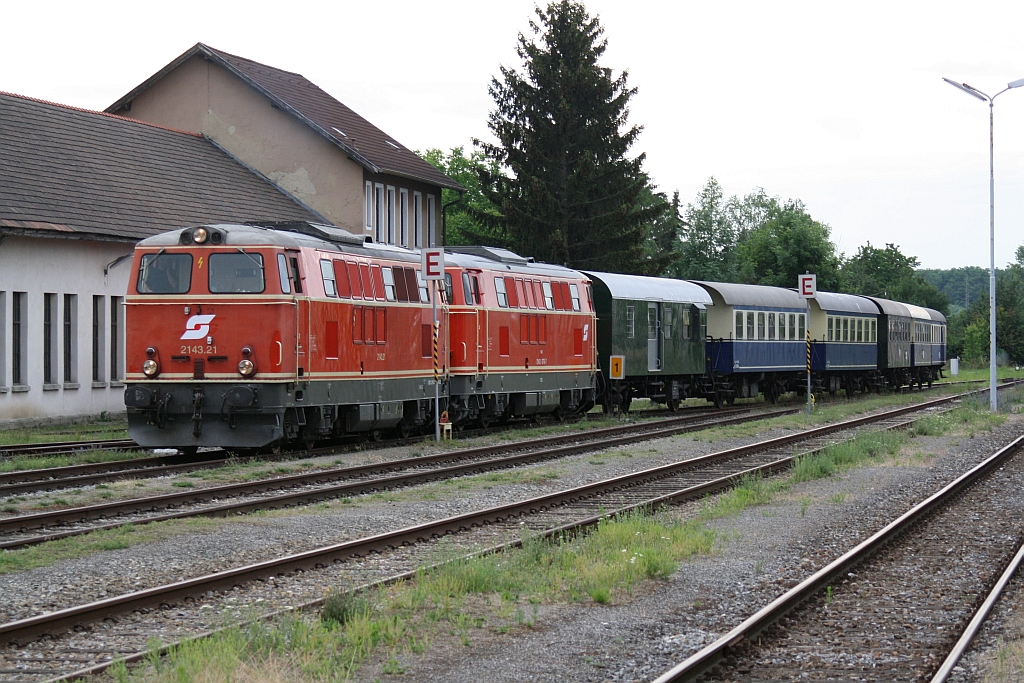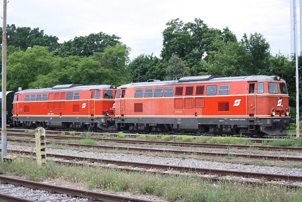 WLB 2143.21 und NLB 2143 070-7 am 27.Juni 2015 im Bf. Mistelbach Lokalbahn.