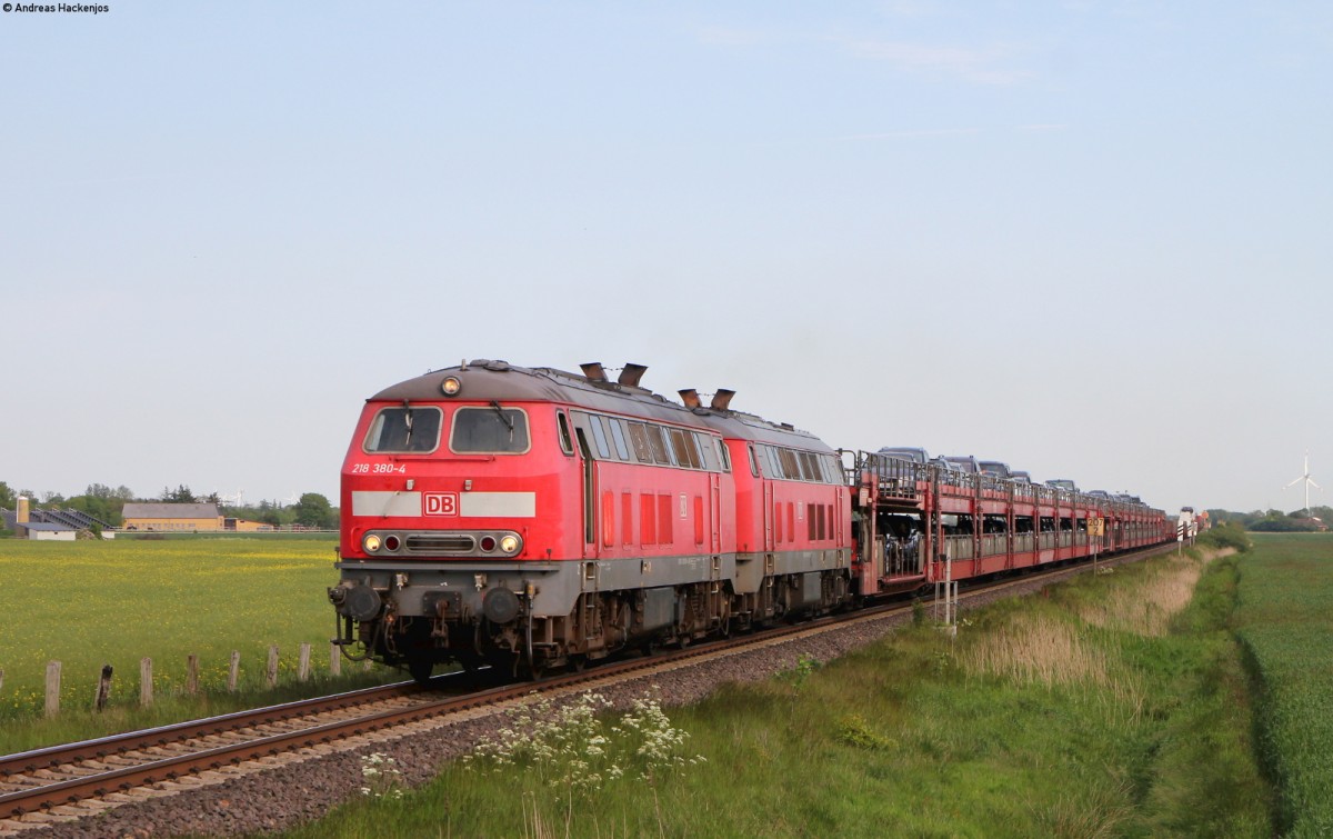 218 380-4 und 218 389-5 mit dem AS 1450 (Niebüll-Westerland(Sylt)) bei Emmelsbüll 5.6.15