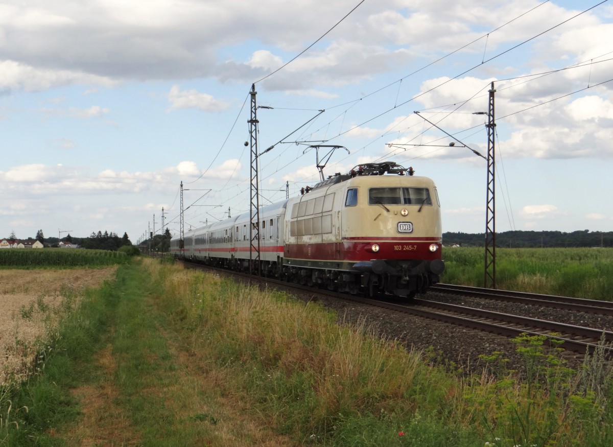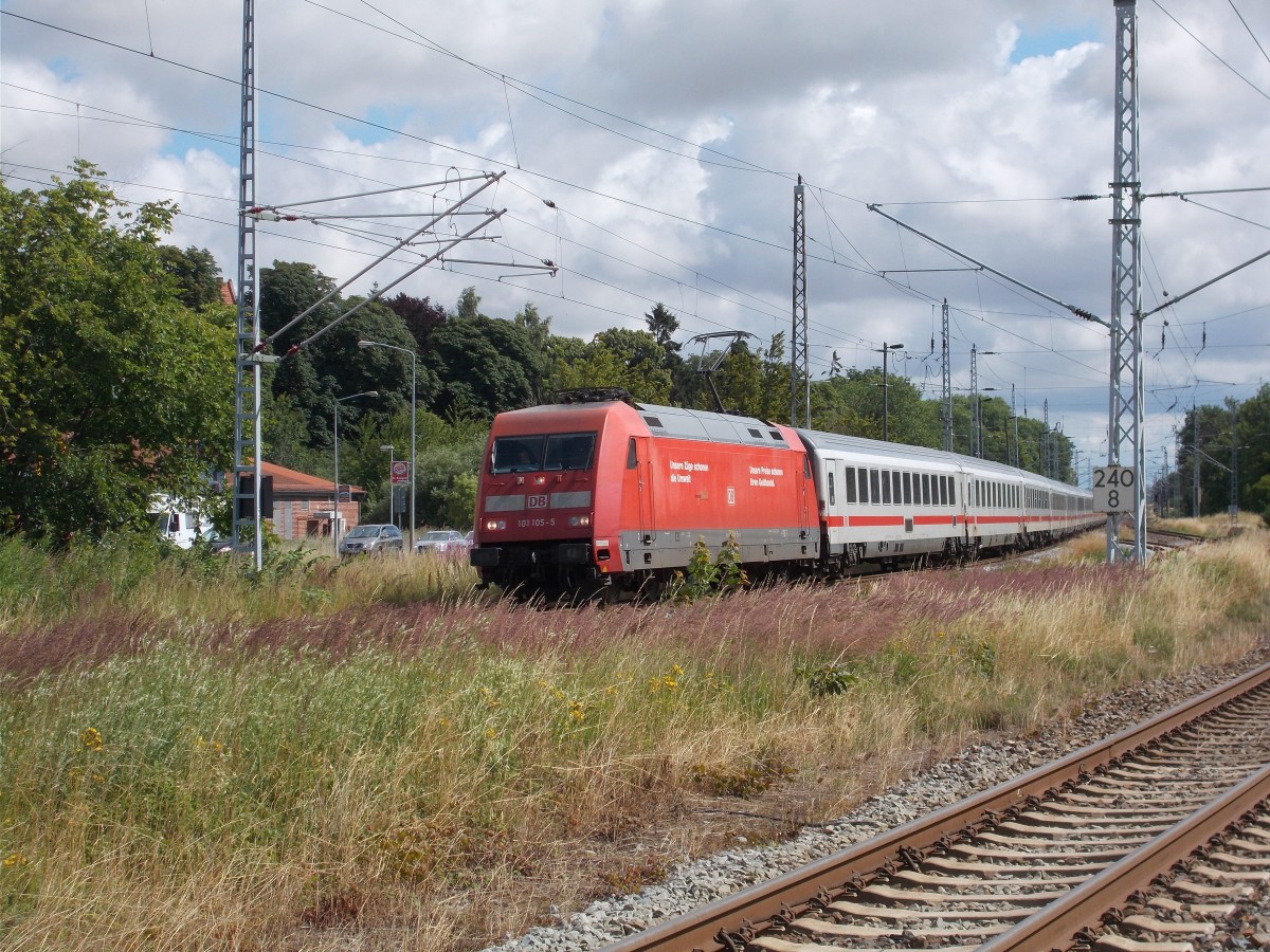 101 105 rauschte mit dem IC 2213 Binz-Stuttgart,am 20.Juli 2015,durch Samtens.