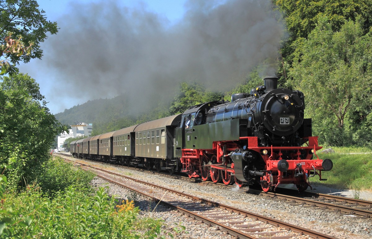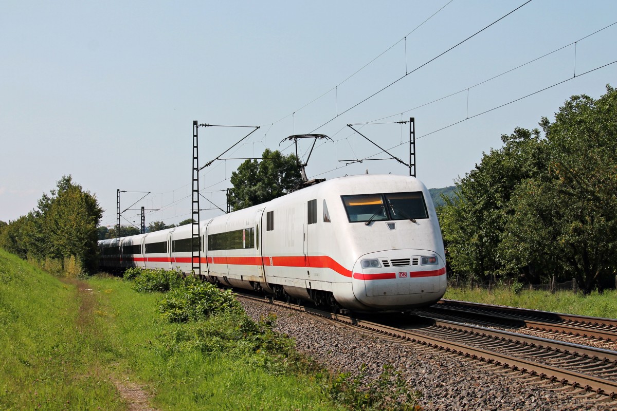 Der IC 181 (Frankfurt - Stuttgart - Zürich) wurde am 17.07.2013 über die Altbaustrecke umgeleitet. Das Bild zeigt den Zug mit 101 110-5 bei der Durchfahrt durch den Bahnhof Sachsenheim.