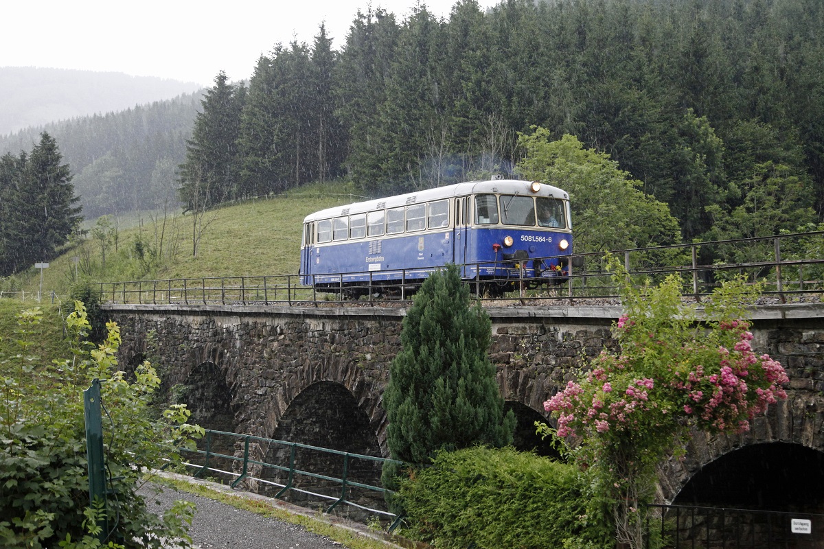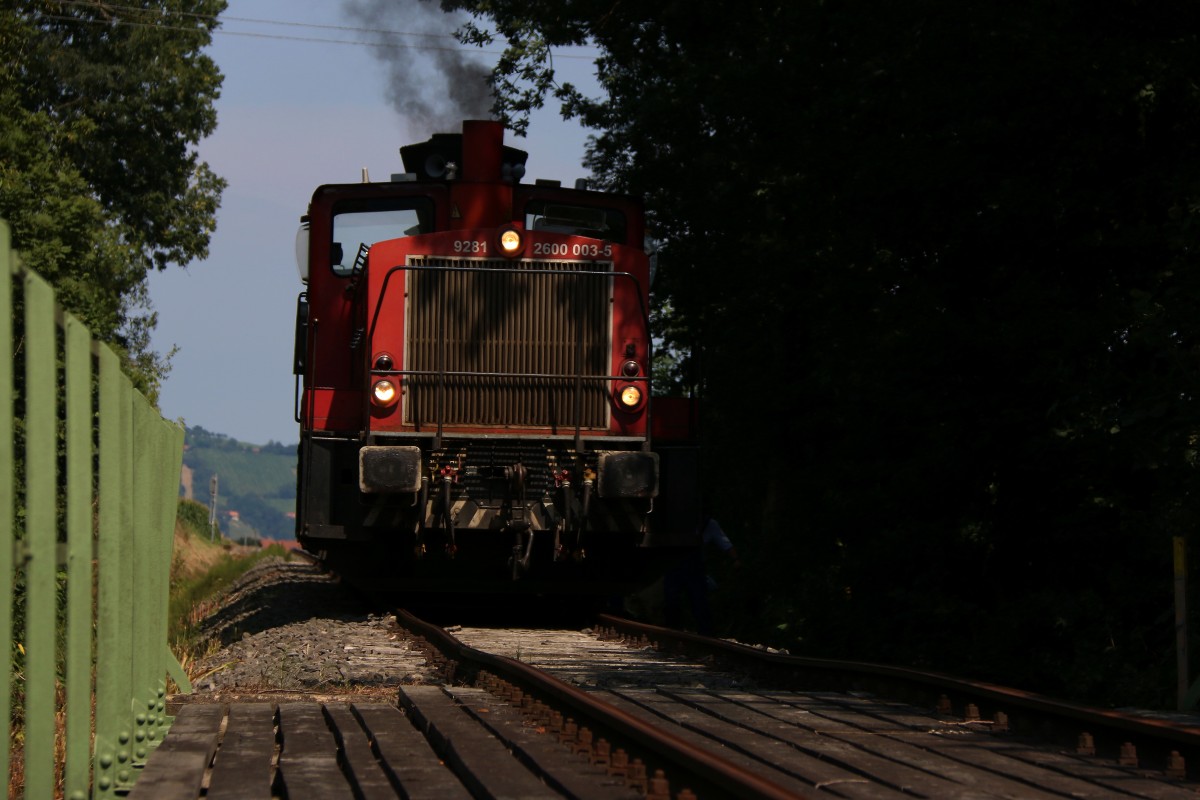 Der Fahrweg der Sulmtalbahn wird zwar nachwievor instandgehalten weist aber trotzdem Alterserscheinungen auf. Hier im Bild DH 600.3 vor der Sulmbrücke bei Prarath. 18.07.2015