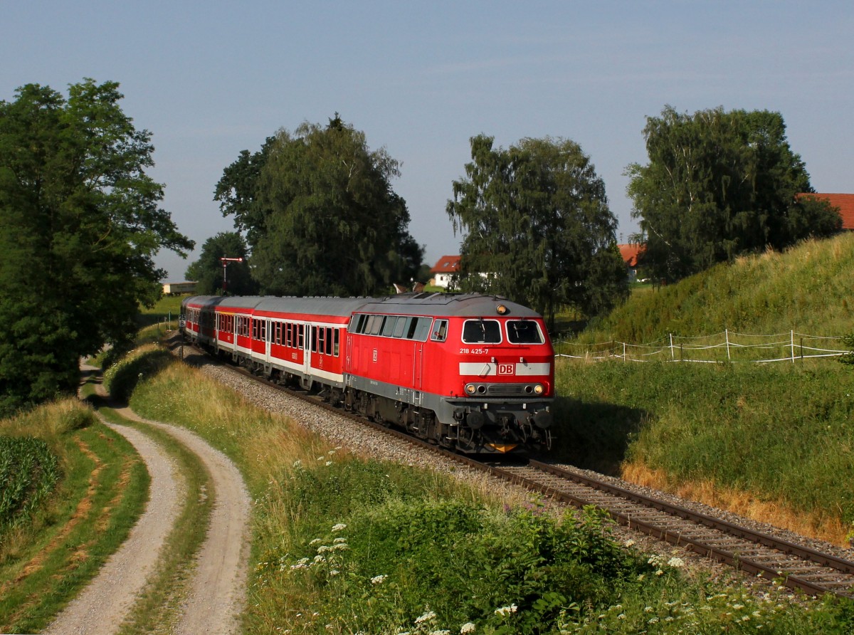 Die 218 425 mit einem RE nach Memmingen am 03.07.2015 unterwegs bei Stetten.