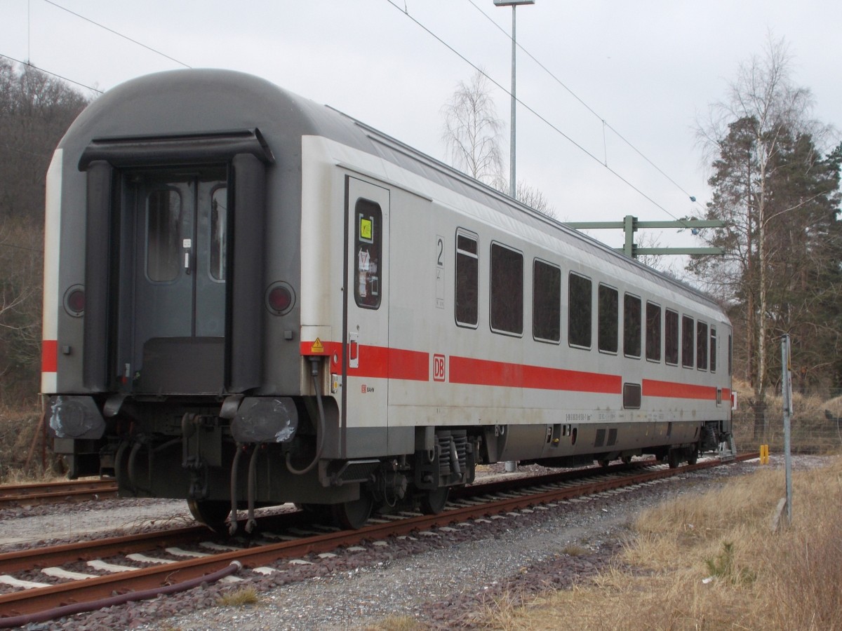 Ein abgestellter IC-Wagen,am 07.März 2015,in der Binzer Abstellanlage.Aufnahme durch den Zaun.