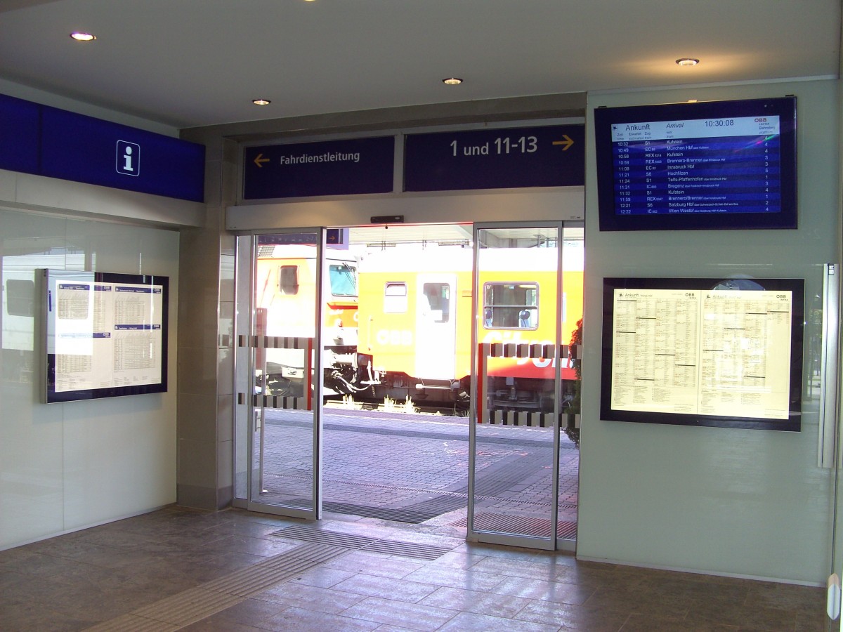 Im Zeitraum Frühjahr 2014 bis Sommer 2015 wurde die Empfangs-/Abfahrtshalle des Hauptbahnhofes Wörgl einer Generalrenovierung unterzogen. Alle Fahrpläne und wichtigen Informationen befinden sich in innenbeleuchteten Vitrinen, der sichtbare große Monitor zeigt die Zugankünfte an. Wörgl Hbf ist einer der ganz wenigen Bahnhöfe in Österreich, wo es noch eine Fahrdienstleitung mit einem  echten  Fahrdienstleiter mit roter Dienstmütze gibt.