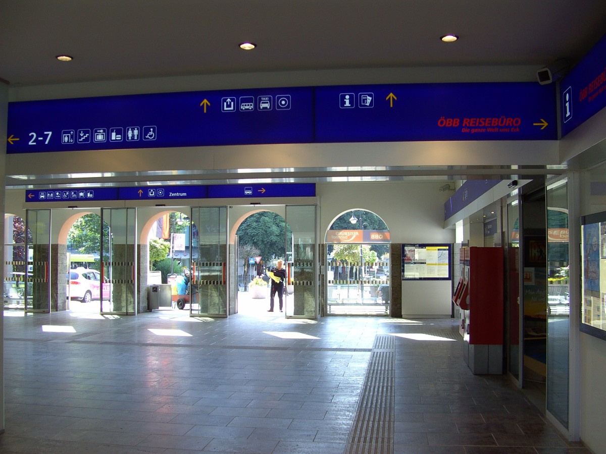 Im Zeitraum Frühjahr 2014 bis Sommer 2015 wurde die Empfangs-/Abfahrtshalle des Hauptbahnhofes Wörgl einer Generalrenovierung unterzogen. Auch im Bereich vor dem Wartesaal und Ausgang zu den Bahnsteigen 1, 11, 12 und 13 wurde das Wegeleitungssystem mittels innenbeleuchteter blauer Lichtbänder mit Piktogrammen und Hinweisen erneuert.