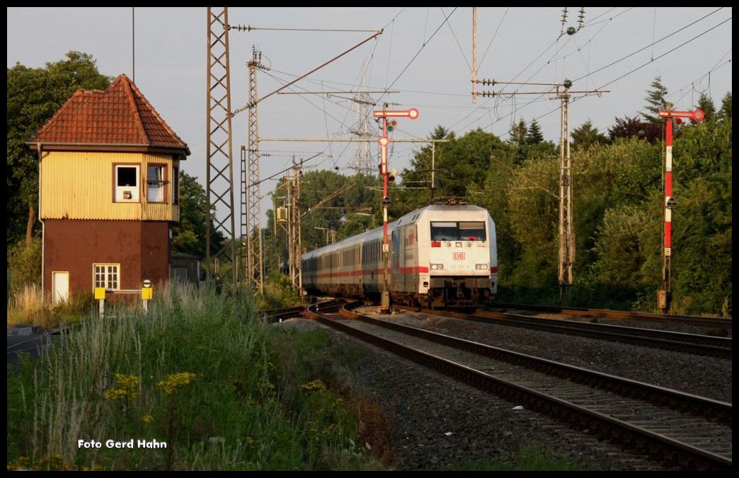 Werbelok 101071 MÄRKLIN war am 18.7.2015 Zuglok des IC 140 nach Amsterdam. Hier kommt der Zug verspätet um 20.21 Uhr durch Westerkappeln - Velpe.