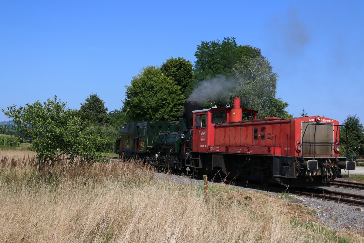 Gleinstätten am 18.Juli 2015. Zu Probefahrten erreichte 29.671 mit DH600.3 den letzten Bahnhof der legendären Sulmtalbahn.