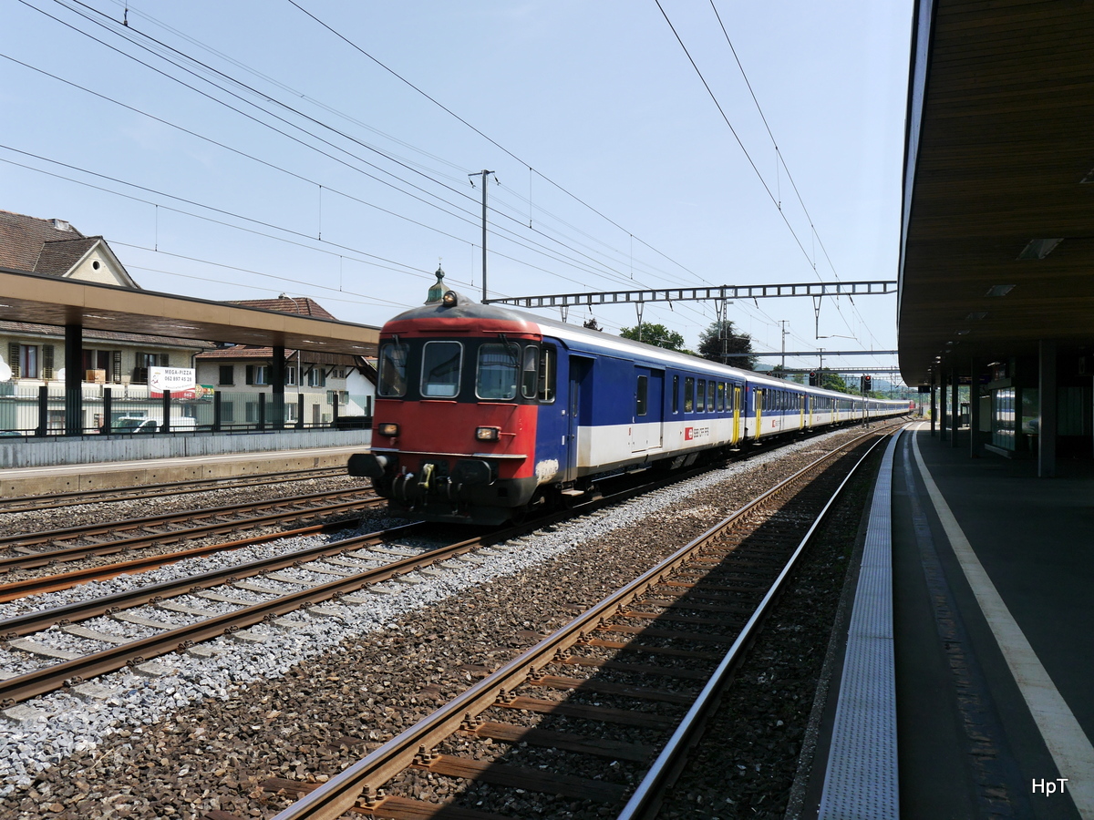 SBB - Ersatzzug an der Front der Steuerwagen BDt 50 85 82-33 970-3 bei der durchfahrt im Bahnhof von Rupperswil am 11.07.2015