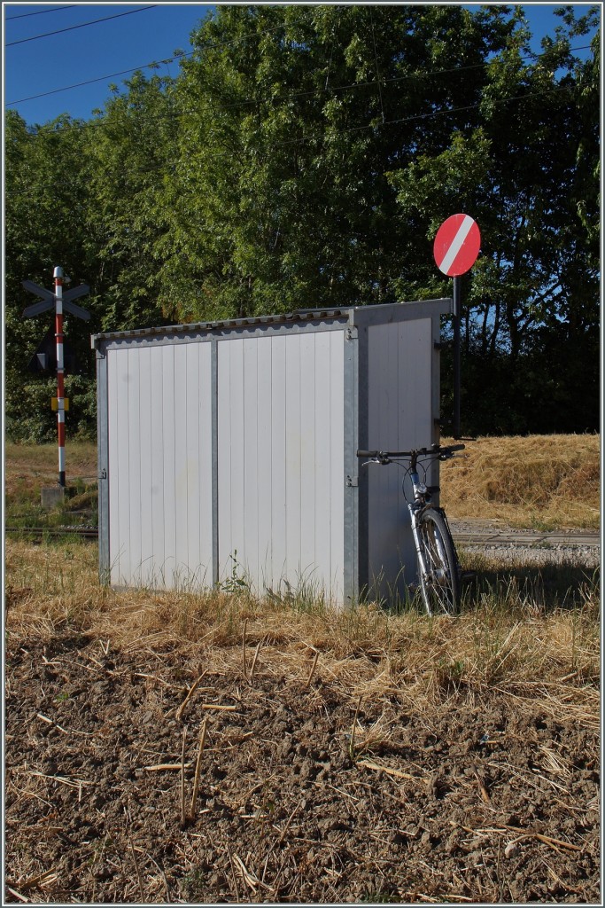 Zugegeben, die Hügel zwischen Morges und dem Jura erinnern kaum an die Puszta, und doch hörte ich die Stimme: "Mach Signal, Andy!" als ich mich damit beschäftigte, wie hier bei Bedarf der Zug anzuhalten ist. Immerhin, man riskiert nicht ins "Geläutewerk" hineinzugreifen und die Sorge wie die "Cible" zurückgestellt wird, war auch vergebens, denn der auf den Zug wartende Reisende darf die hier zu sehende Scheibe mit einem Hebel solange in die richtige Postion drücken bis der Zug sie sieht; losgelassen stellt eine Feder sei zurück. Bedarfsgerechte High-tech in Chardonney-Château. "Mach Signal, Stefan" hörte ich die nicht weit von hier wohnende Piorschka sagen... 21. Juli 2015