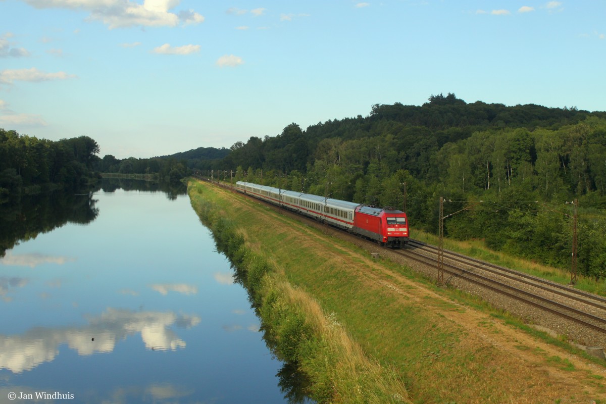 101 120-4 zieht am 20.07.2015 einen Intercity dem nächsten planmäßigen Halt in Günzburg an der Donau entlang.