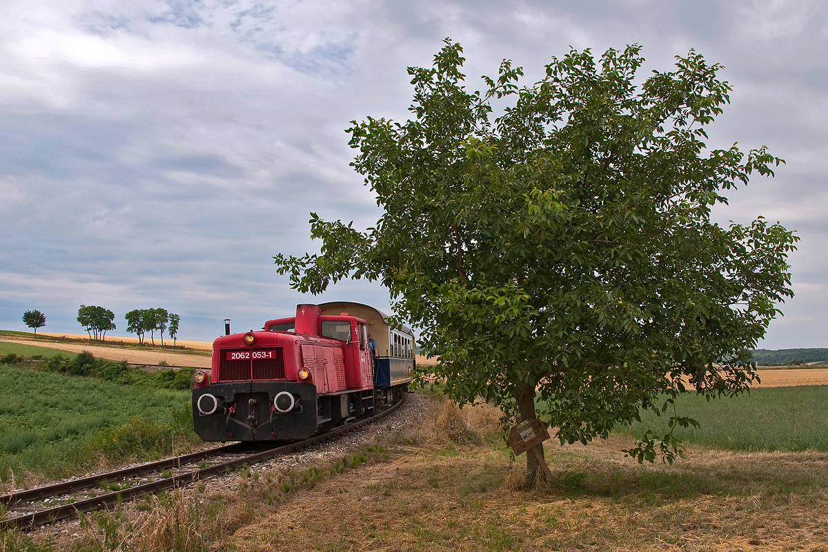 2062 053 war am 25.07.2015 mit dem Nostalgie Express "Leiser Berge" nach Ernstbrunn unterwegs, hier kurz nach Würnitz-Hetzmannsdorf.