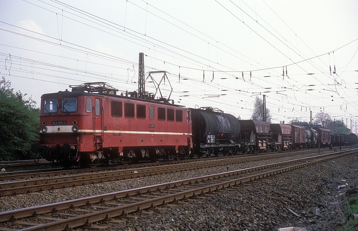 140647 war am 23.3.1991 um 9.34 Uhr bei Vehrte mit einem Güterzug in Richtung Bremen unterwegs.